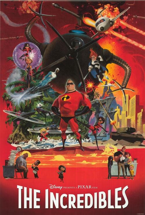 This is an unreleased movie poster by Robert McGinnis and was tweeted out by Brad Bird, the writer/director of The Incredibles. Mr. McGinnis famously painted the posters for Barbarella and a number of James Bond films and I like the way he made the shadows on Mr. Incredible's rib cage form a Superman S!